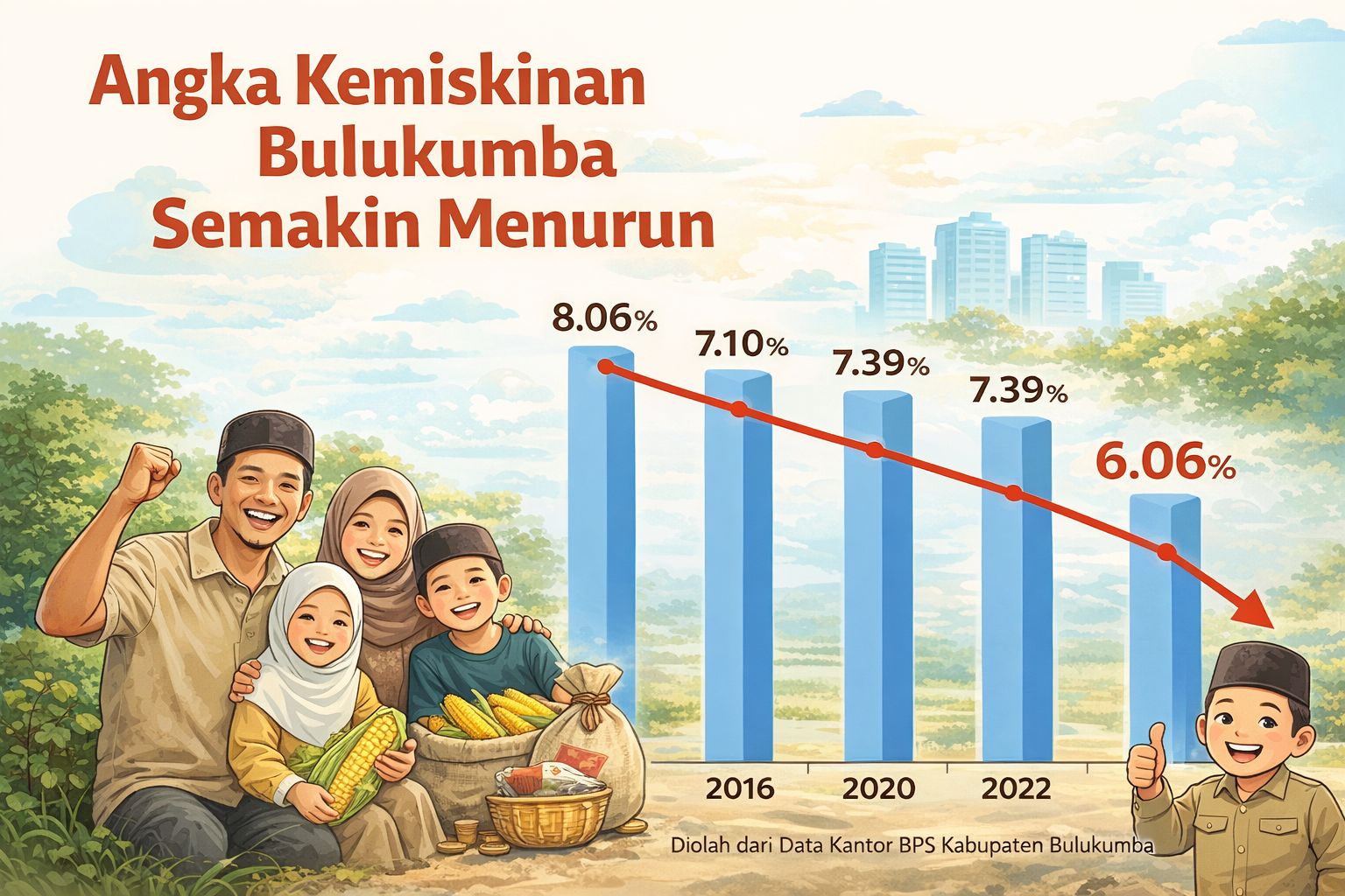 Bulukumba,- Angka kemiskinan di Kabupaten Bulukumba terus menunjukkan tren penurunan yang konsisten.
