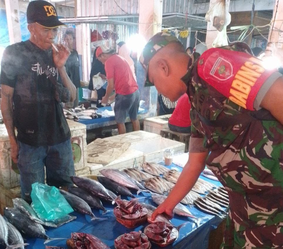 Babinsa Koramil 1420-05/Dua Pitue Pantau Harga dan Ketersediaan Bahan Pokok di Pasar Dongi