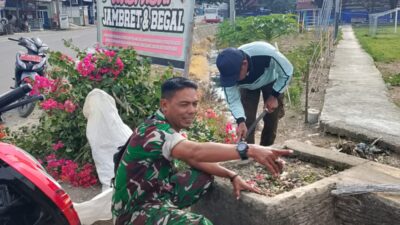 SIDRAP | Tigabelasnews — Semangat kebersamaan kembali terlihat di Kelurahan Tanrutedong. Babinsa Kelurahan Tanrutedong Koramil 1420-05/Duapitue, Sertu Andi Paris, bersama Lurah Tanrutedong Hj. Andi Sunggu, SE, ibu-ibu Program Keluarga Harapan (PKH), serta mahasiswa Kuliah Kerja Nyata (KKN) Universitas Hasanuddin menggelar kerja bakti pembersihan lingkungan, Jumat (23/1/2026).