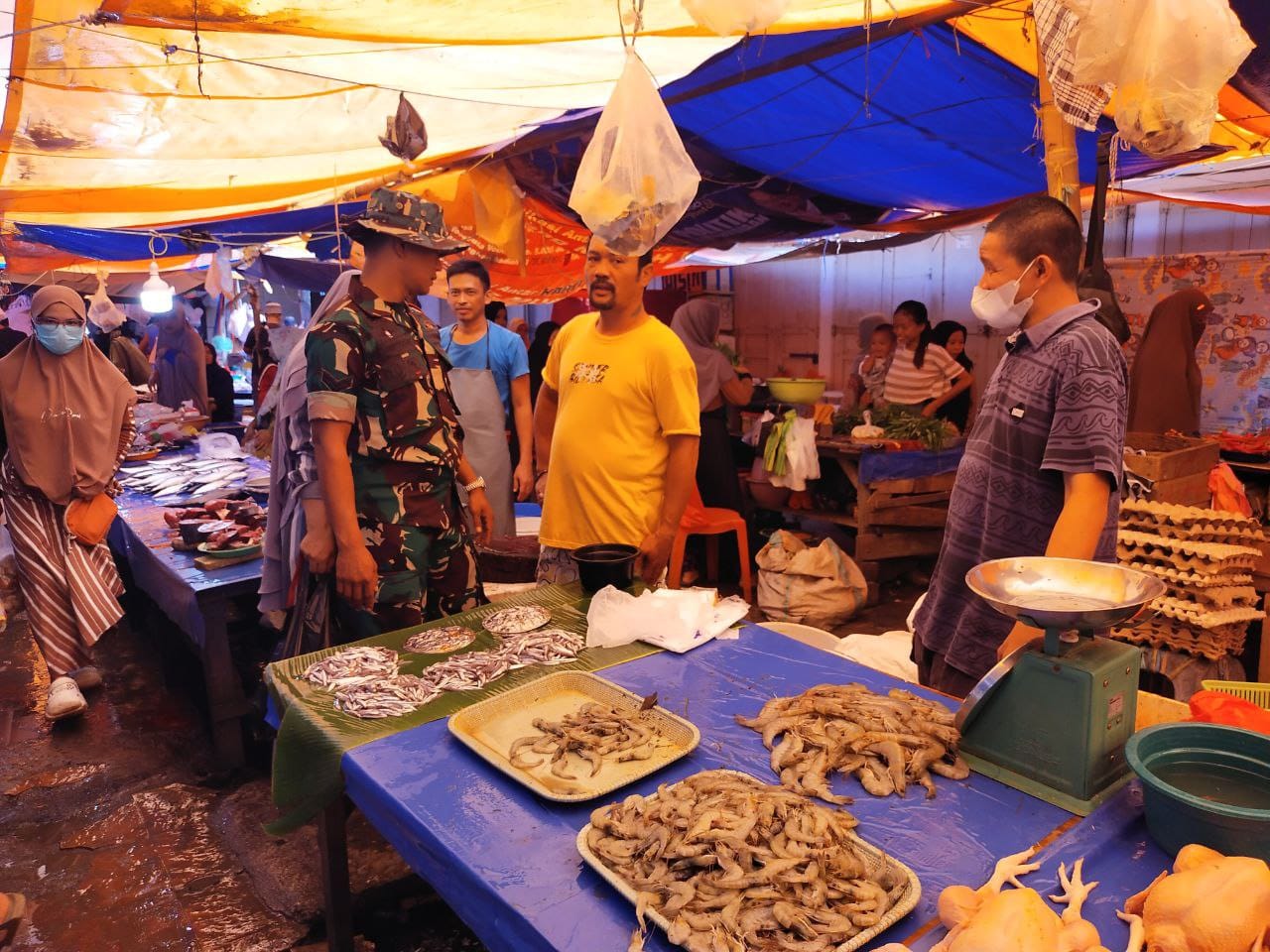 Babinsa Rappang Pantau Harga Bahan Pokok di Pasar Sentral, Harga Relatif Stabil