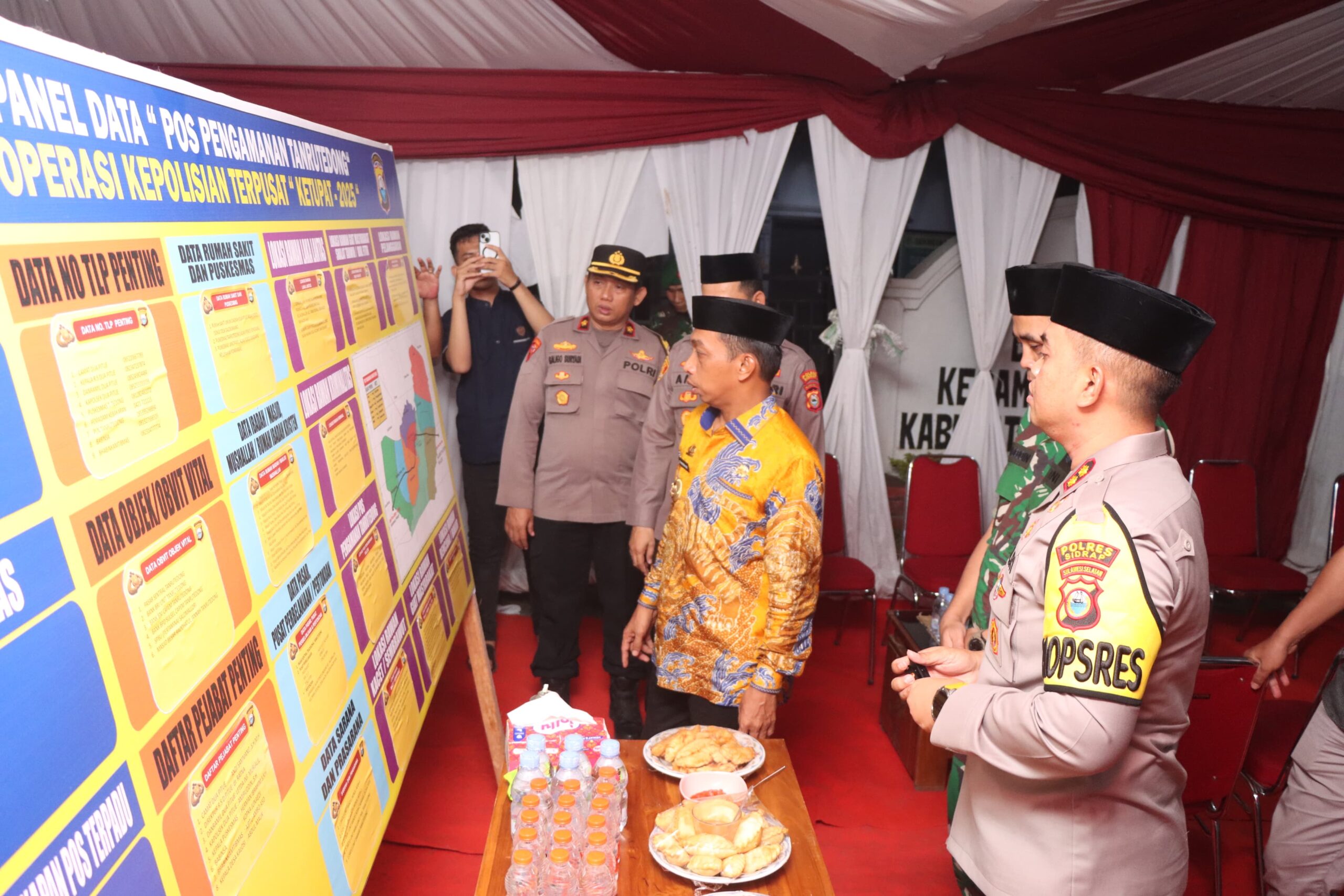 SIDRAP, – Kapolres Sidrap, AKBP Fantry Taherong bersama Pimpinan Daerah melakukan pengecekan langsung ke Pos Pengamanan (Pos Pam) Operasi Ketupat 2025 di Kecamatan Dua Pitue dan Kecamatan Panca Rijang. Kunjungan ini bertujuan untuk memastikan kesiapan personel dalam memberikan pelayanan dan pengamanan kepada masyarakat selama arus mudik dan balik Lebaran. Kamis (27/03/25) malam.