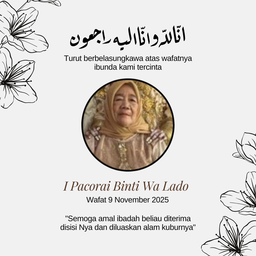 Telah berpulang ke Rahmatullah Ipacorai Bin wa,Lado pada hari Minggu malam, 9 November 2025, sesudah shalat Isya, di rumah duka Jl. Anoa, Lonron Lembu, Lingkungan 2, Kelurahan Wala, Kecamatan Maritengngae, Kabupaten Sidrap.
