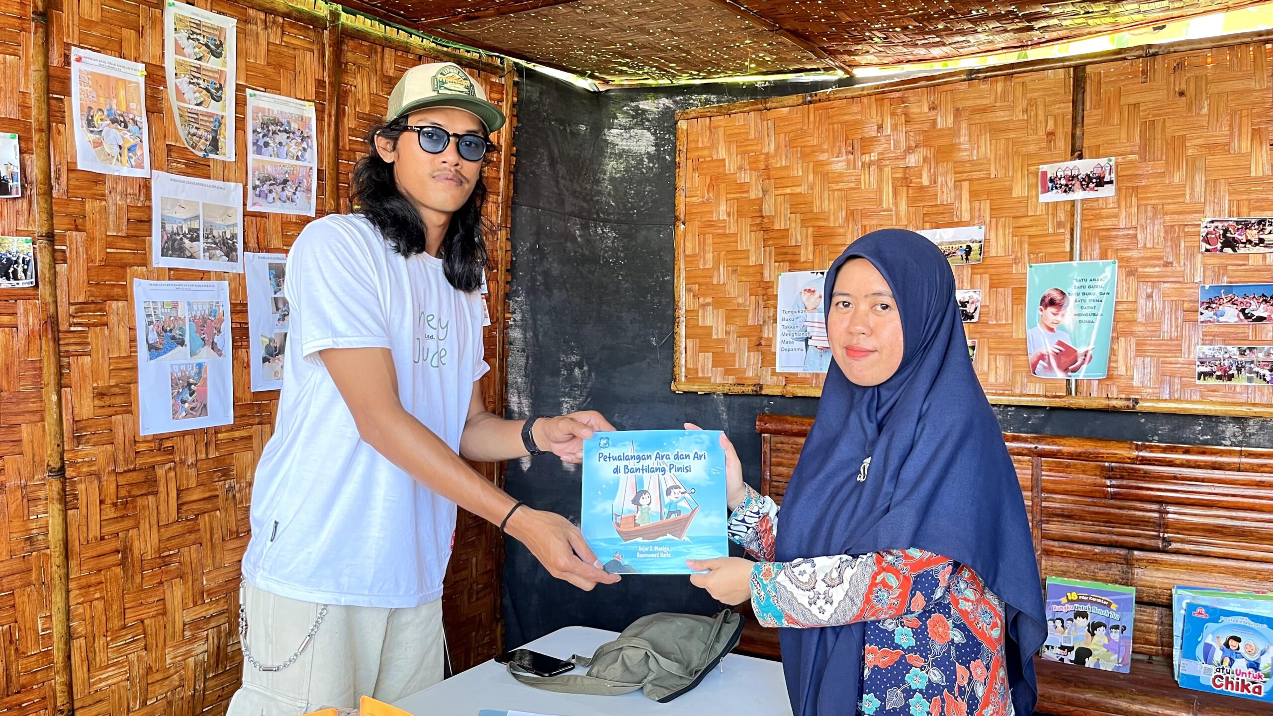 Salah satu penulis, Basmawati Haris, turut hadir di halaman Kantor Dinas Kearsipan dan Perpustakaan Daerah Bulukumba untuk memberikan sosialisasi interaktif.