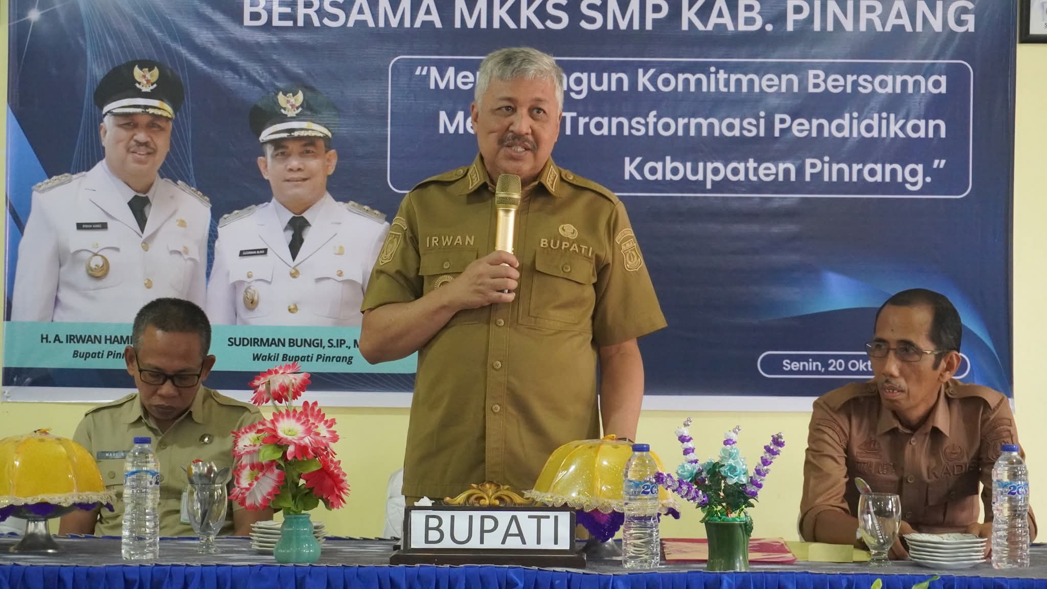 Hal ini disampaikan Bupati Pinrang, H. A. Irwan Hamid, S.Sos., saat menghadiri Silaturahmi Musyawarah Kerja Kepala Sekolah (MKKS) SMP se-Kabupaten Pinrang, Senin (20/10), di SMP Negeri 2 Pinrang.