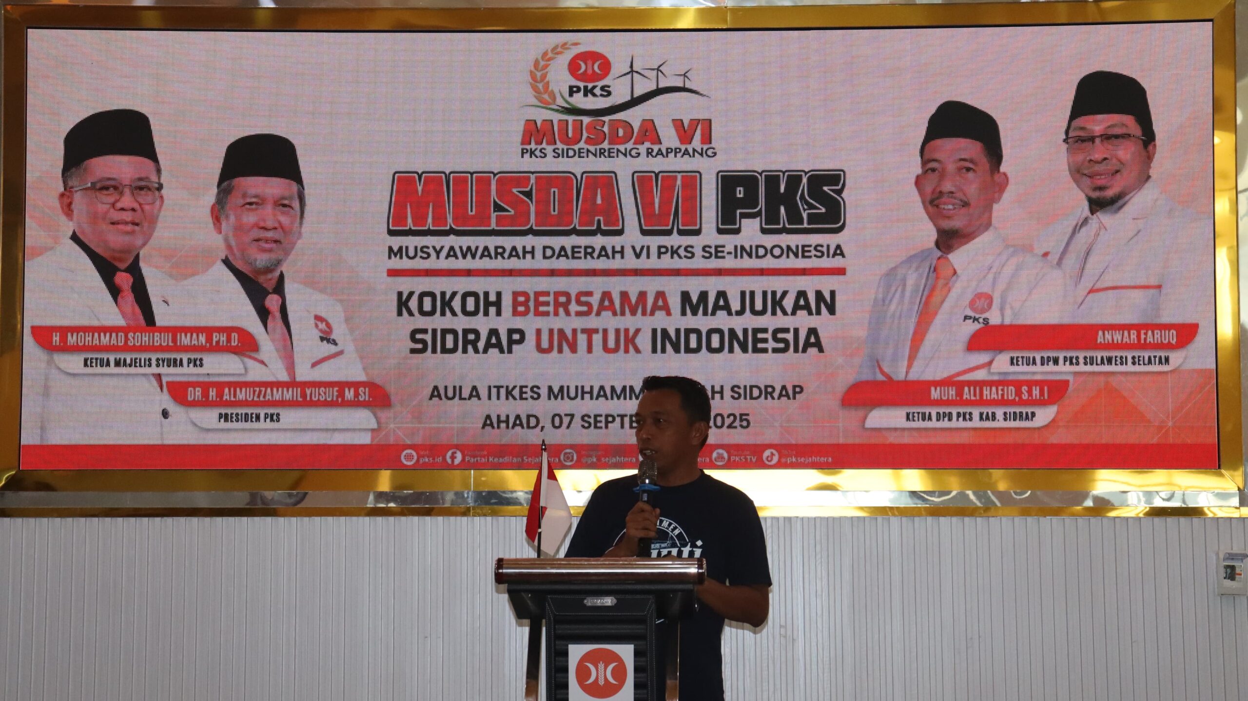 Bupati Sidenreng Rappang, Syaharuddin Alrif menghadiri Musyawarah Daerah (Musda) VI Partai Keadilan Sejahtera (PKS) di Auditorium Iqra Institut Teknologi Kesehatan dan Sains (ITKES) Muhammadiyah Sidrap, Ahad (7/9/2025).