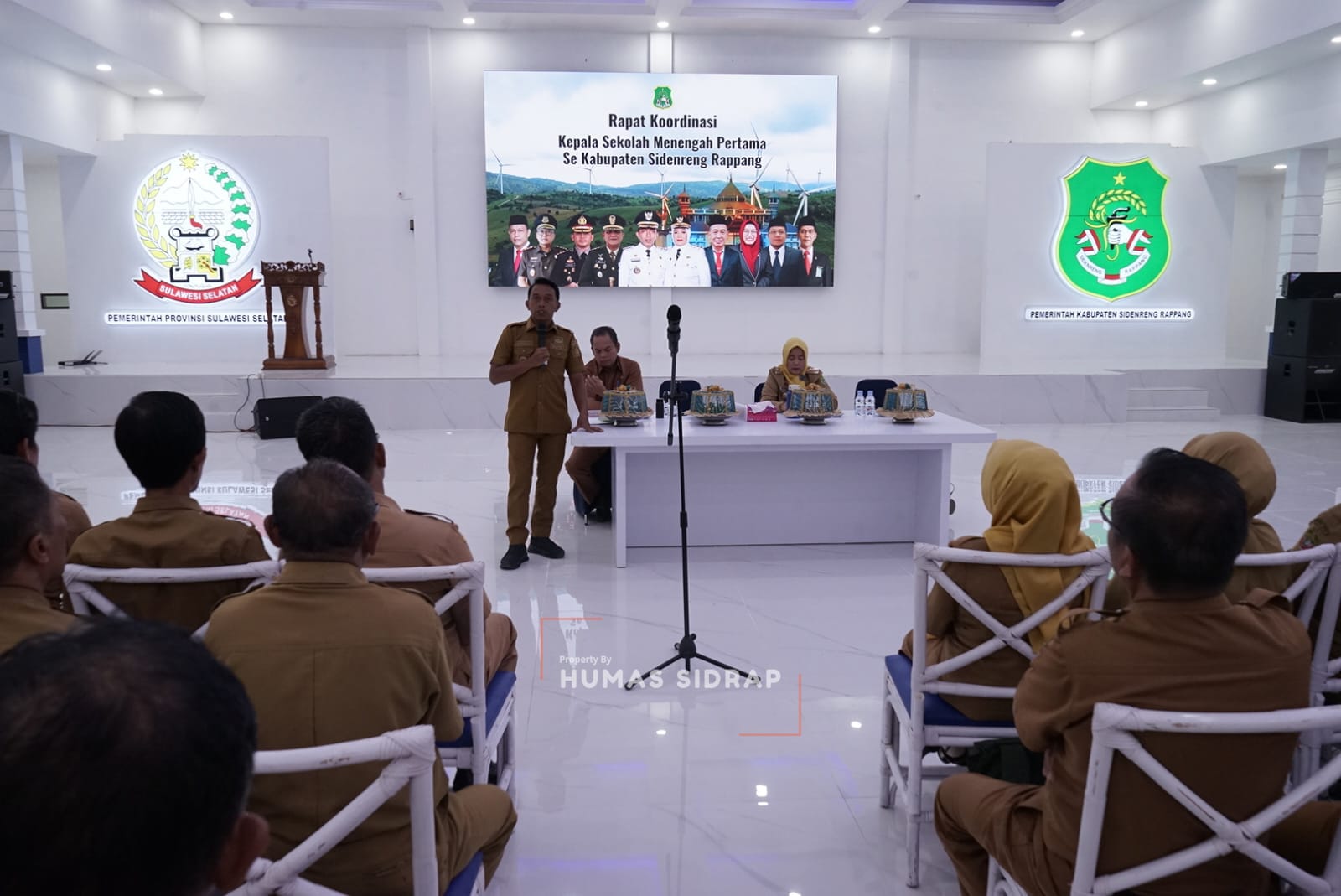 Rapat dihadiri Wakil Bupati Sidrap Nurkanaah, Pelaksana Tugas Kepala Dinas Pendidikan dan Kebudayaan Sirajuddin, Sekretaris Dinas Pendidikan dan Kebudayaan Nurhidayah, Kepala Bidang Ketenagaan Syamsuddin, para kepala SMP, serta undangan lainnya.