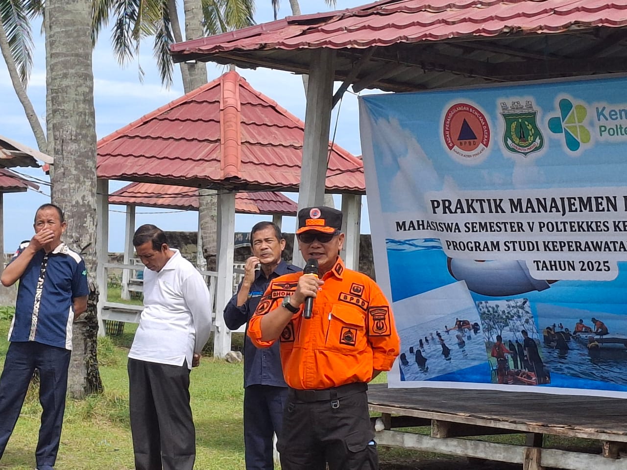PINRANG 13 News : Kepala Pelaksana Badan Penanggulangan Bencana Daerah (BPBD) Kabupaten Pinrang, Dr. Rhommy Manule, M.Si, menegaskan pentingnya peningkatan kapasitas dan kesiapsiagaan mahasiswa dalam menghadapi situasi bencana. Hal tersebut disampaikannya saat membuka kegiatan Kuliah Praktek Lapangan Manajemen Bencana bagi mahasiswa Semester V Poltekkes Makassar Program Studi Keperawatan Parepare, yang dilaksanakan di Lowita Center, Kecamatan Suppa, Kabupaten Pinrang, Rabu (29/10/2025).
