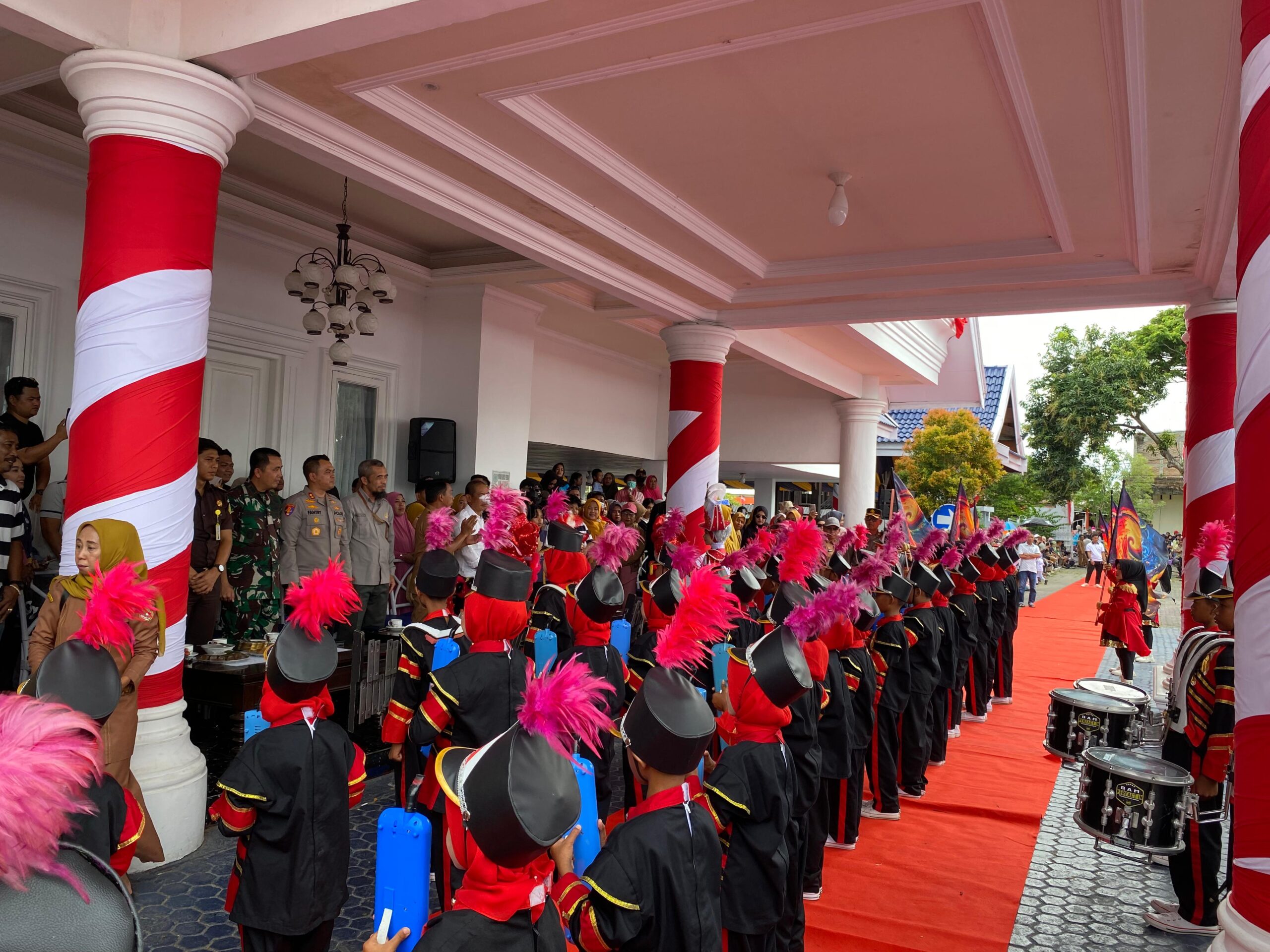 Keramaian terlihat utamanya di halaman Rumah Jabatan Bupati Sidrap, tempat panggung penghormatan yang dihadiri Bupati Syaharuddin Alrif bersama Forkopimda.
