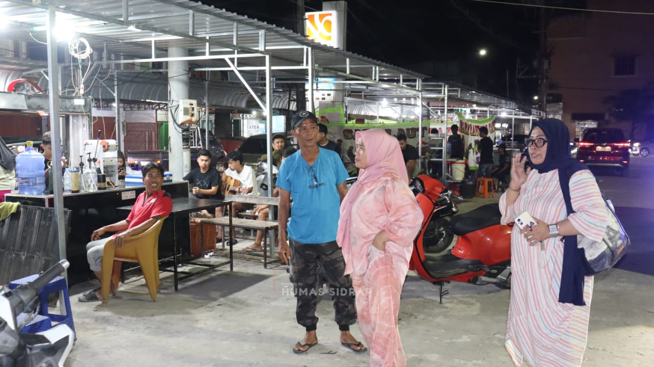 Di sela peninjauan, Nurkanaah menyempatkan diri berdialog dengan pedagang sambil menikmati aneka kuliner yang dijajakan.