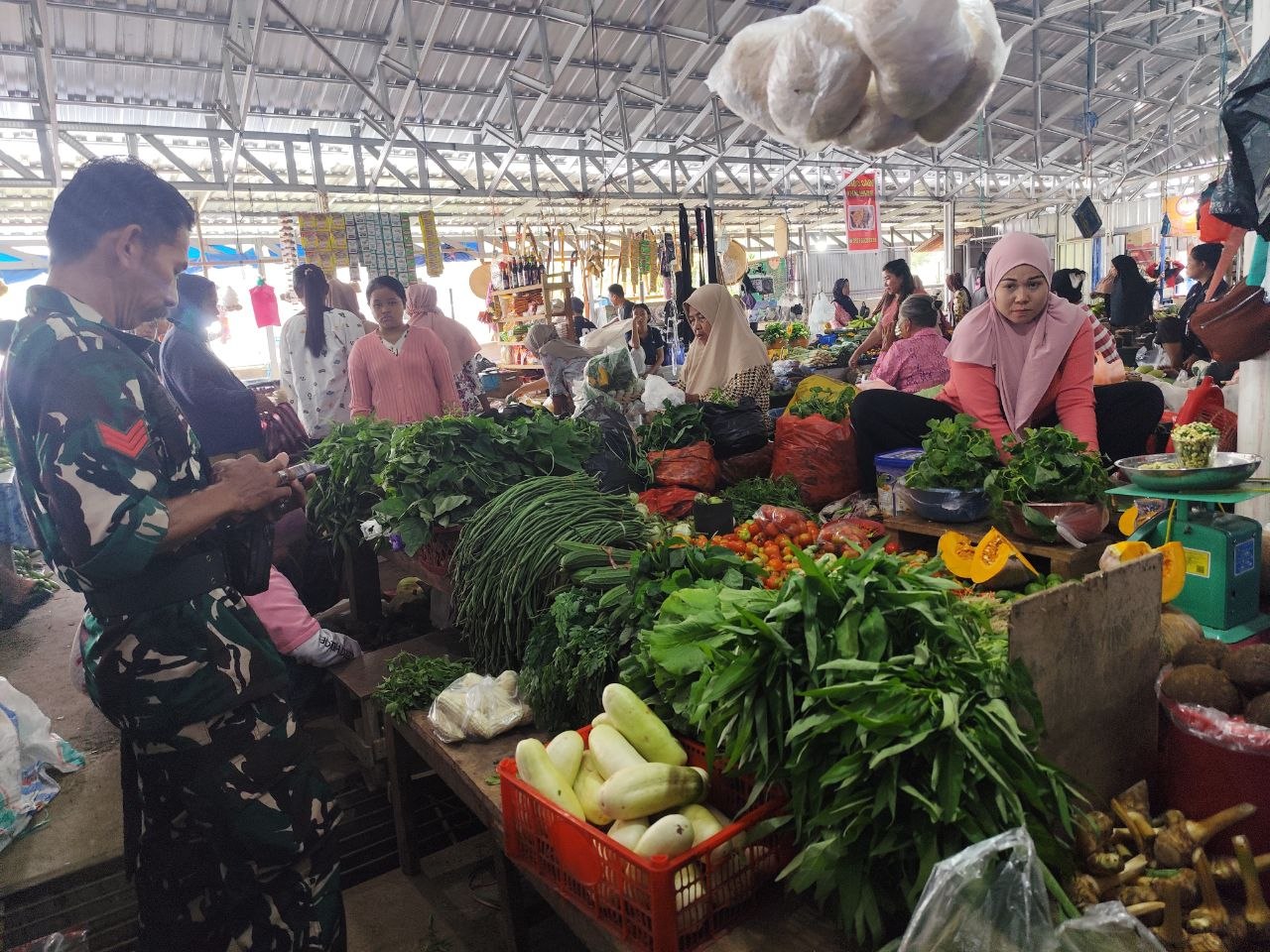 SIDRAP – Dalam upaya memastikan stabilitas harga dan ketersediaan kebutuhan pokok masyarakat, Babinsa Koramil 1420-04/Watang Pulu, Kopka Hantoris, melaksanakan pemantauan langsung di Pasar Tradisional Lawawoi, Kecamatan Watang Pulu, Kabupaten Sidrap, Minggu (05/06/2026).