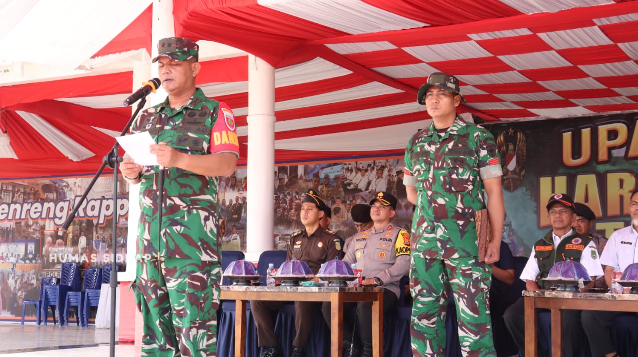 Apel dipimpin Dandim 1420/Sidrap Letkol Inf Andi Zulhakim Asdar, dihadiri Kapolres Sidrap AKBP Dr. Fantry Taherong, Kepala BPBD H. Sudarmin, perwakilan Kajari Sidrap Wiryawan Batara, serta tamu undangan lain.