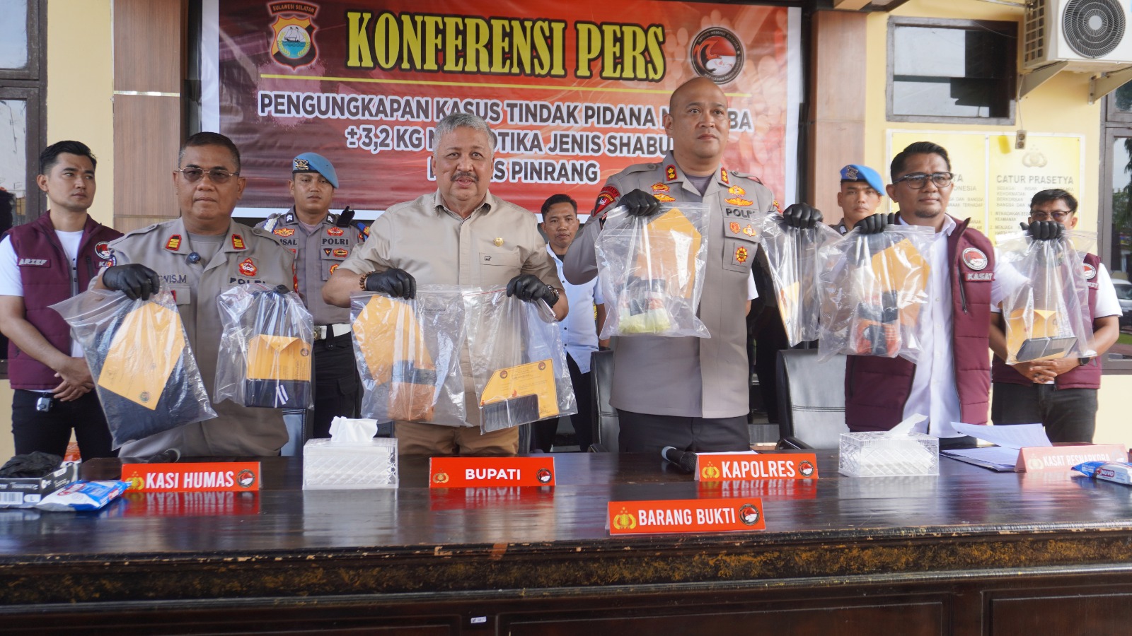 Komitmen ini tercermin dari keberhasilan jajaran Satuan Reserse Narkoba Polres Pinrang mengungkap kasus penyalahgunaan narkotika dengan barang bukti sabu seberat 3,2 kilogram, yang jika dikonversi bernilai sekitar Rp3,8 miliar.