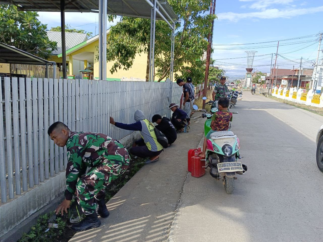 Sidrap – Dalam rangka menjaga kebersihan dan kesehatan lingkungan, personel Koramil 1420-02/Tellu Limpoe memanfaatkan waktu liburnya dengan menggelar karya bakti bersama warga di Kelurahan Arateng, Kecamatan Tellu Limpoe, Kabupaten Sidrap, Kamis (29/5/2025).