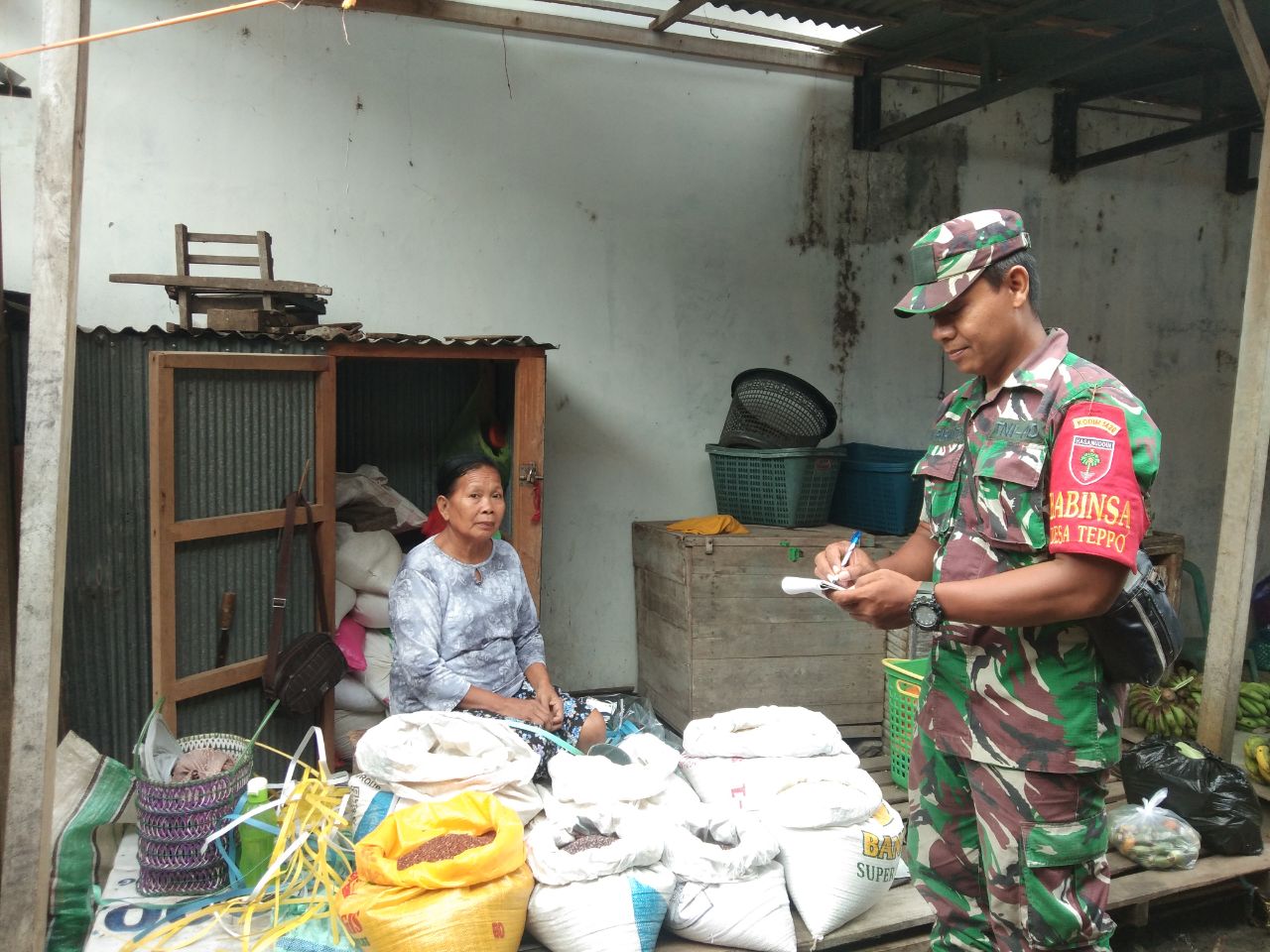untuk itu, Babinsa melakukan pengecekan kebutuhan primer ke lapangan kepada pedagang secara langsung, guna mengantisipasi apabila ada kemungkinan ada oknum pedagang yang tidak mengikuti kebijakan dari pemerintah sesuai harga normal.