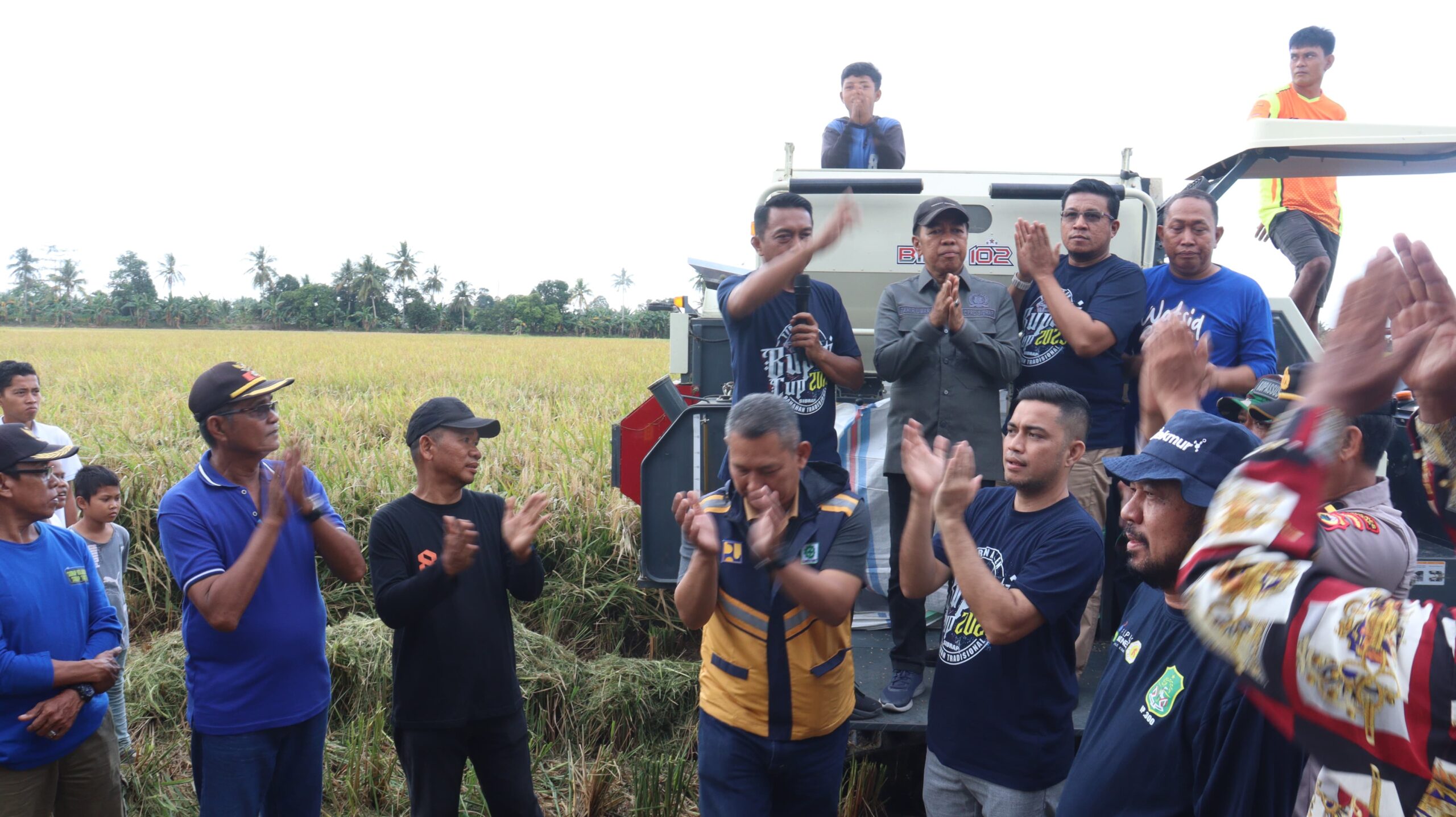 “Alhamdulillah, panen raya ini menjadi bukti kerja keras dan kekompakan petani kita. Kemarin saya bersama jajaran tanam perdana di sini, jadi saya kembali lagi ke tempat ini untuk panen raya,” ujarnya.