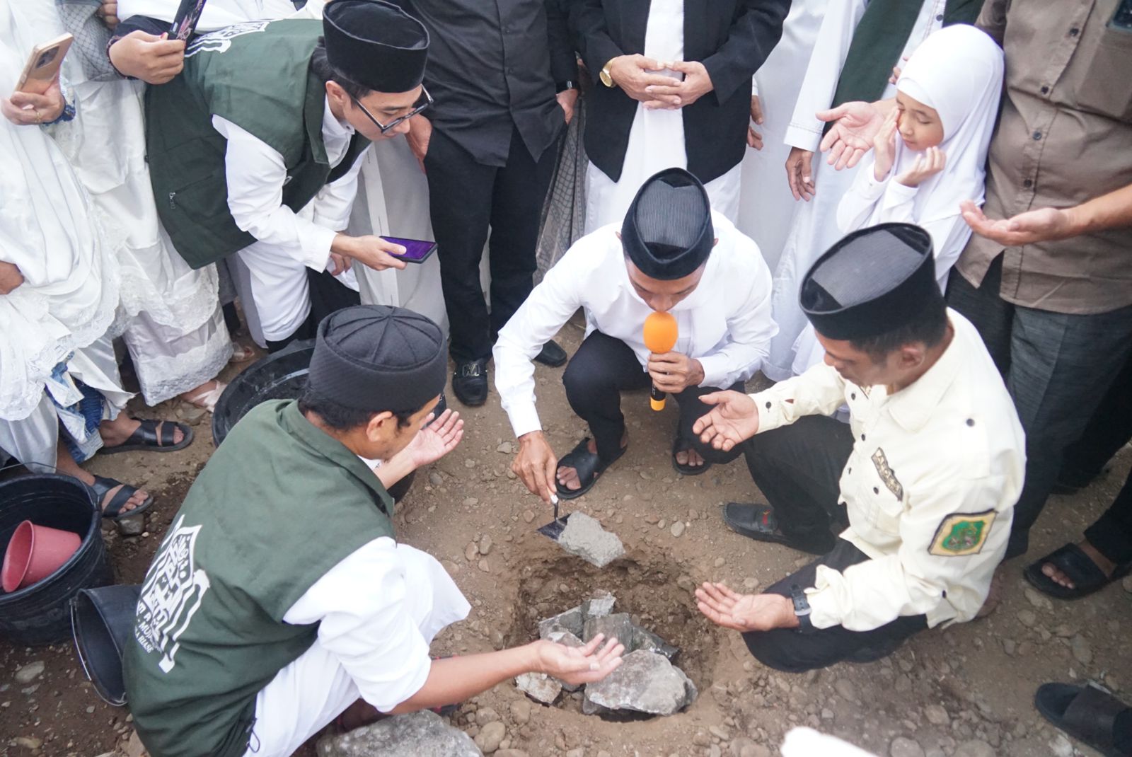 Bupati Sidrap, Syaharuddin Alrif, meletakkan batu pertama pembangunan Pondok Tempat Penghafal Al-Quran (TPA) dan Tahfidz Al-Mujahidin di Desa Bila Riase, Kecamatan Pitu Riase, Jumat (28/3/2025).