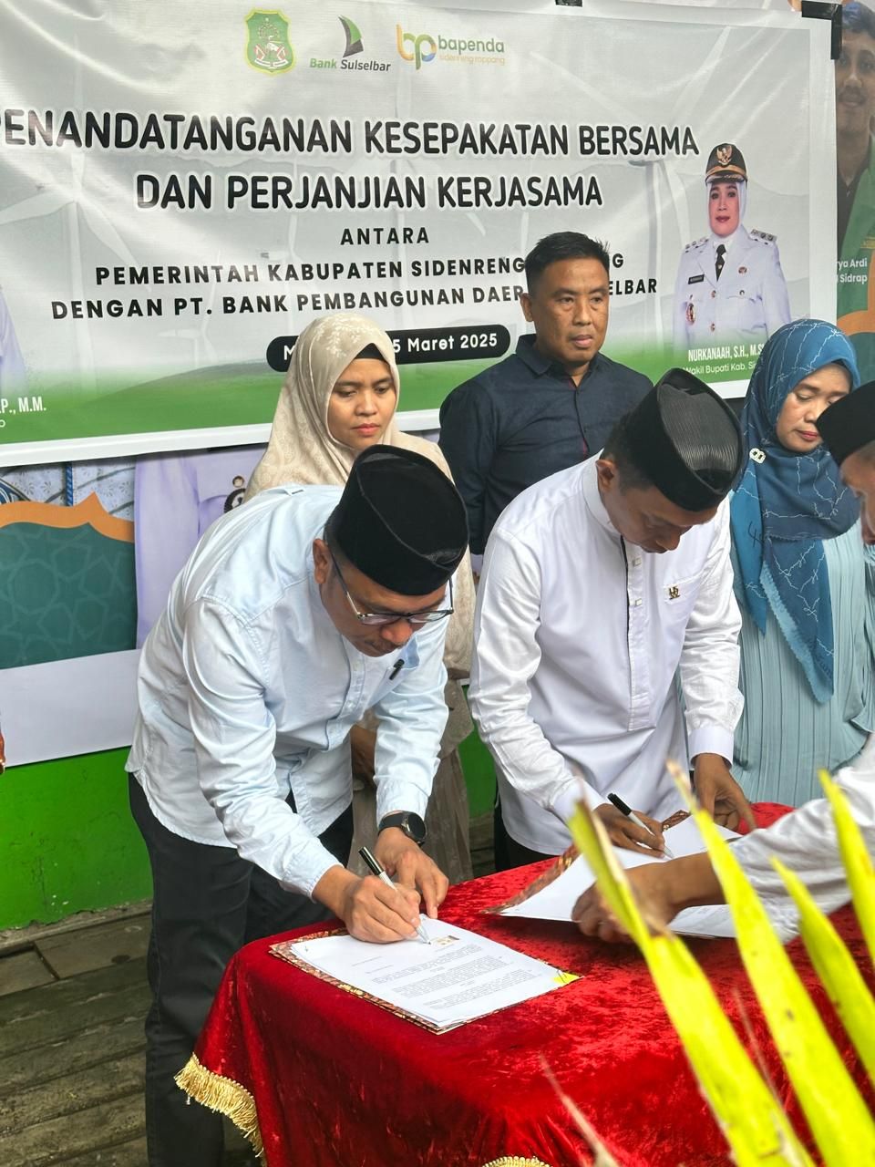 Penandatanganan dilakukan oleh Bupati Sidrap, Syaharuddin Alrif, dan Direktur Utama Bank Sulselbar, Yulis Suandi. .