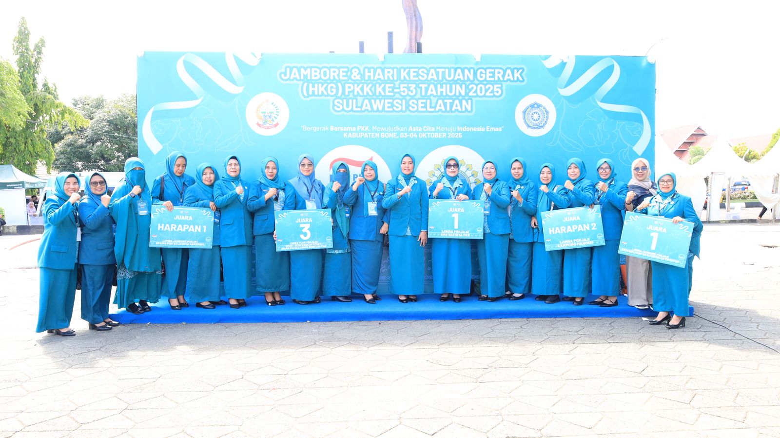 Bulukumba,- Dipimpin Andi Herfida Muchtar, Tim Penggerak PKK Kabupaten yang mengikuti Jambore dan Hari Kesatuan Penggerak (HKG) PKK ke 53 tingkat Provinsi Sulawesi Selatan di Kabupaten Bone, pada 3-4 Oktober 2025.