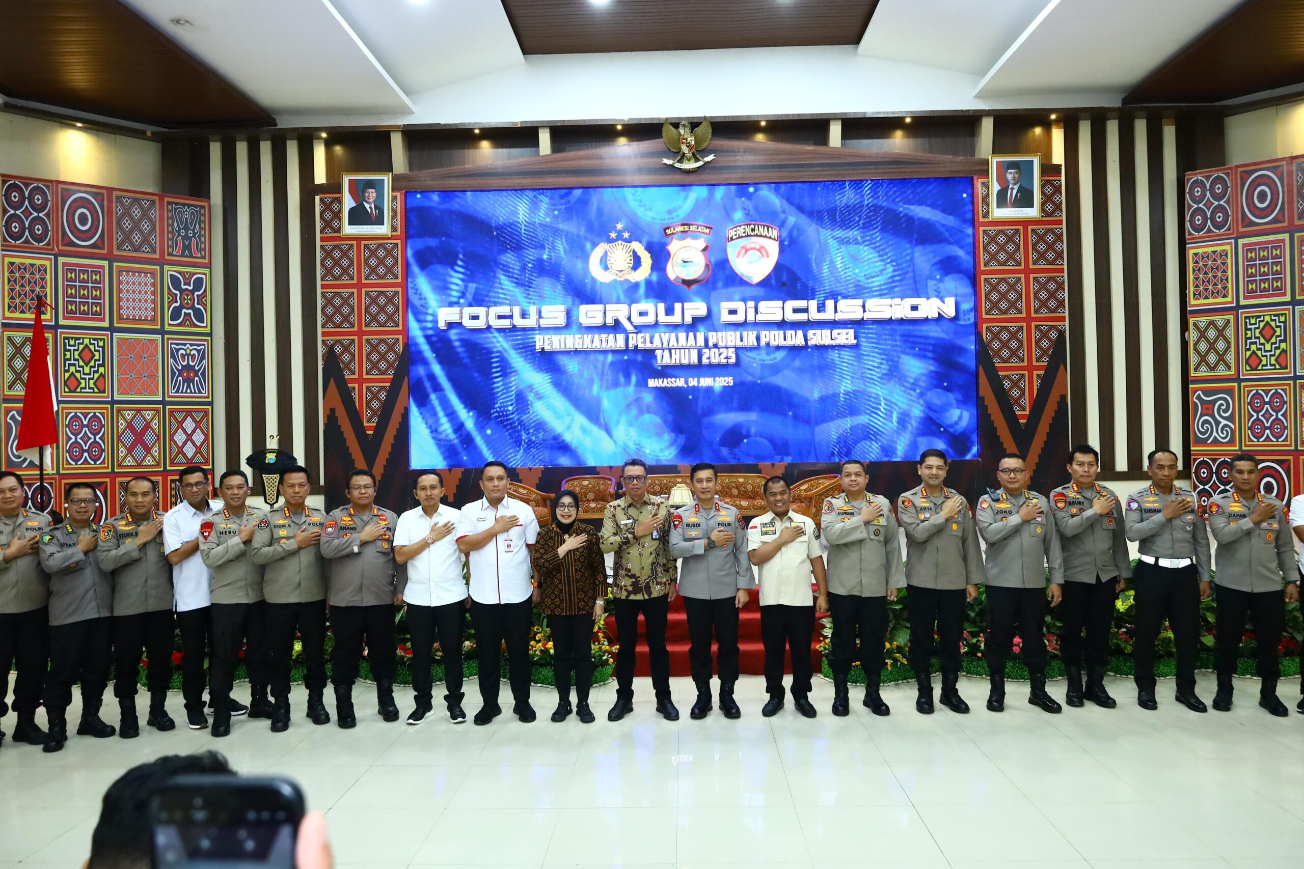 Kapolda Sulawesi Selatan, Irjen Pol. Drs. Rusdi Hartono, M.Si., memimpin langsung kegiatan Focus Group Discussion (FGD) dengan tema “Peningkatan Pelayanan Publik Polda Sulsel Tahun 2025”, yang digelar di Aula Mappaoddang Mapolda Sulsel pada Rabu (4/6/2025).