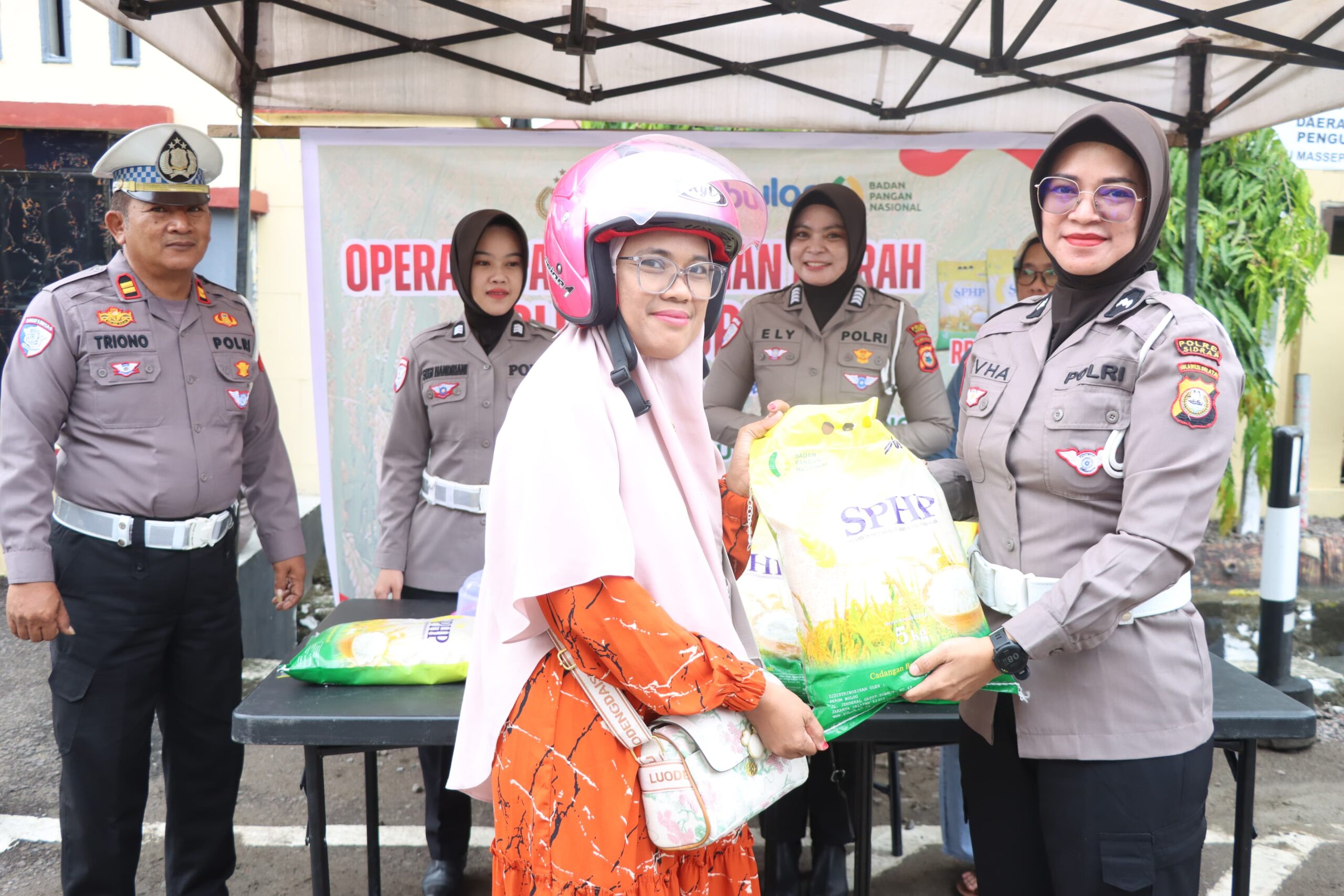 Polres Sidrap Terjunkan Polwan, Ratusan Zak Beras SPHP Ludes Terjual