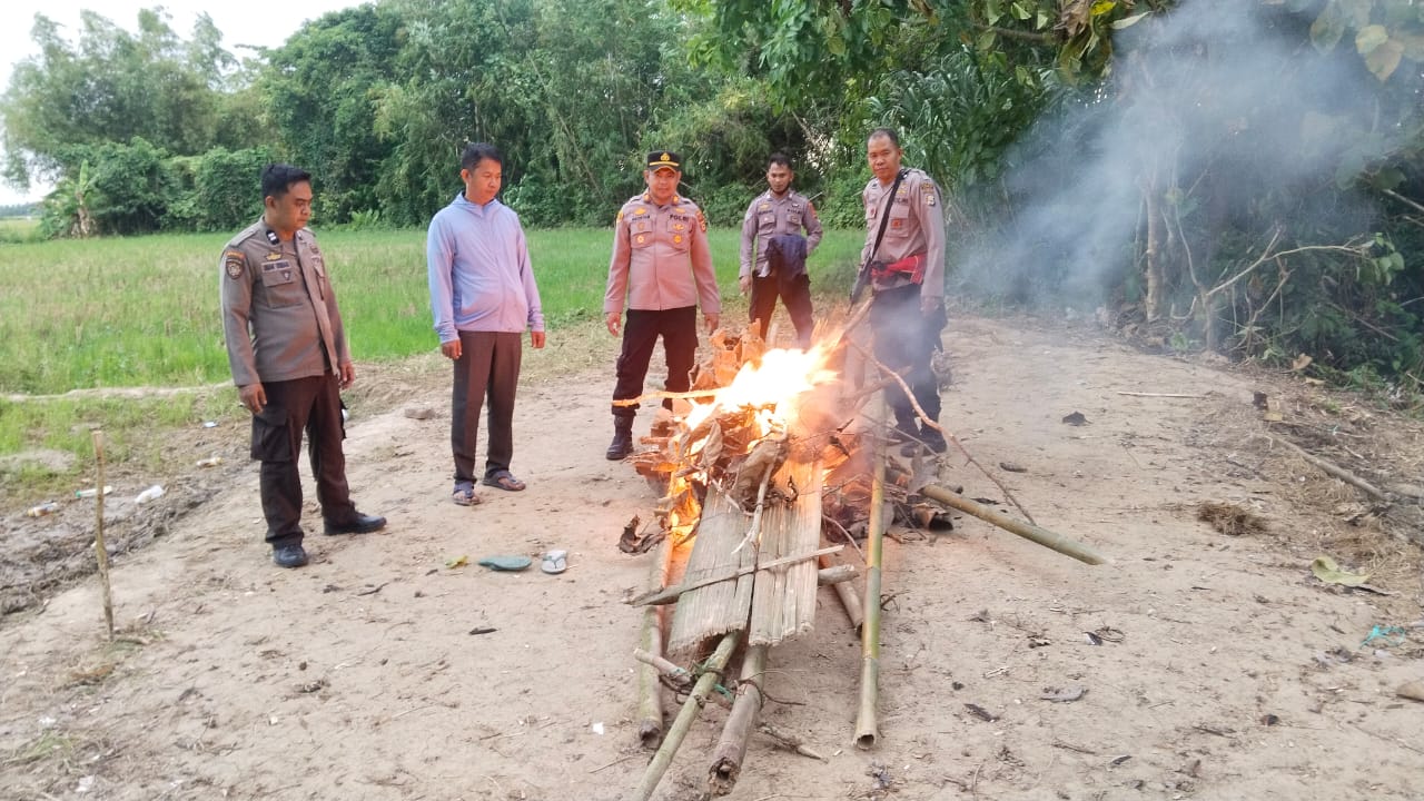 Dalam penggerebekan tersebut, aparat juga langsung melakukan pembersihan terhadap arena sabung ayam serta membakar sisa-sisa perlengkapan yang digunakan dalam praktik judi tersebut sebagai langkah preventif agar tidak digunakan kembali.