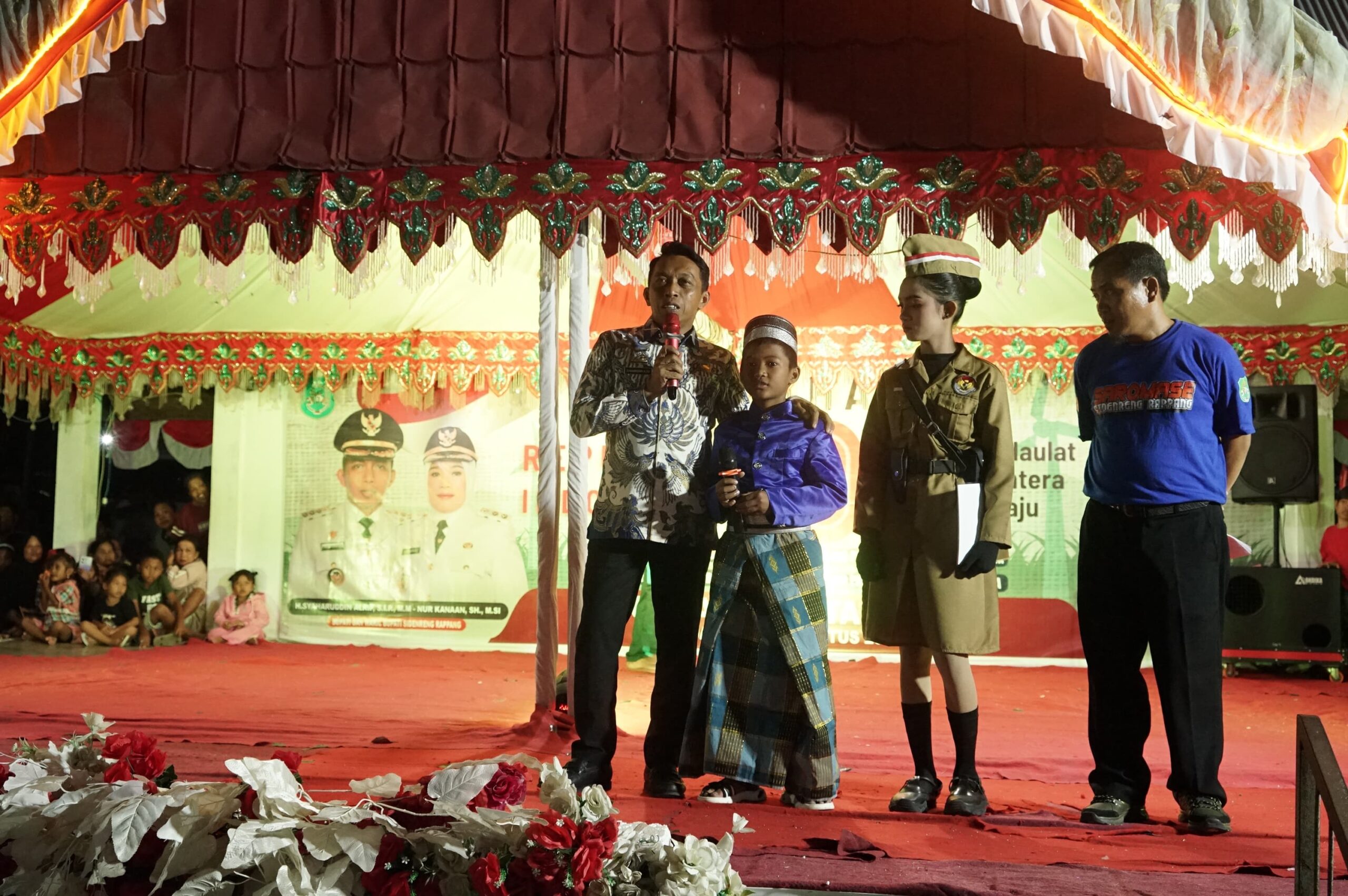 SIDRAP–Bupati Sidenreng Rappang, H. Syaharuddin Alrif, menutup malam pentas seni perayaan HUT ke-80 Republik Indonesia tingkat Kecamatan Watang Pulu di Desa Buae, Kamis malam (21/8/2025).