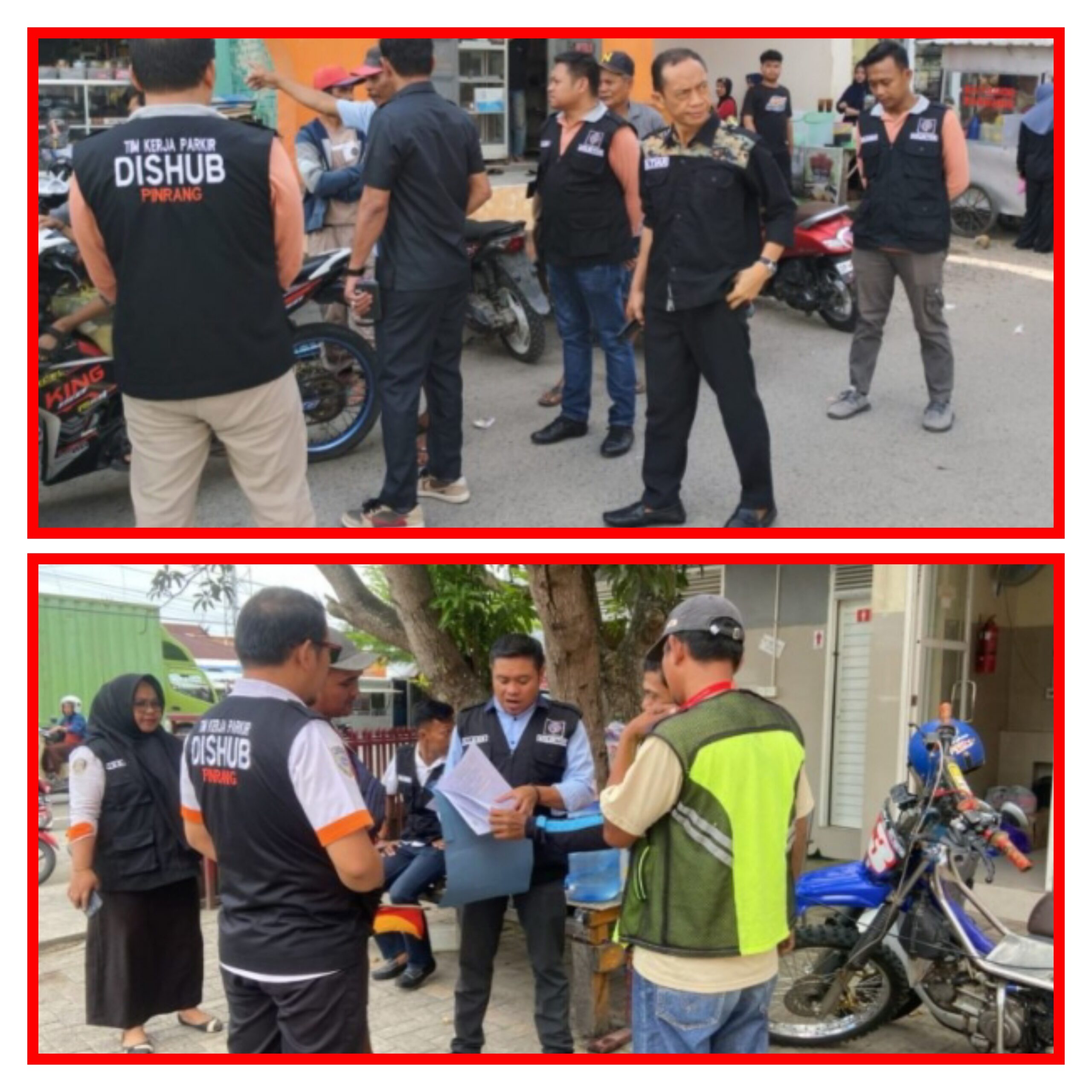 Pinrang 13 News : H. Bahtiar, SP, MM, kepala Dinas Perhubungan Dan Pertanahan Kabupaten Pinrang didampingi Koordinator Tim Kerja Parkir Dishubtan Pinrang, Faizal, bersama sejumlah anggota tim, turun langsung ke lapangan untuk melakukan pembinaan serta pengecekan terhadap para Juru Parkir (Jukir) di sejumlah titik strategis.pada sabtu 24/5/25