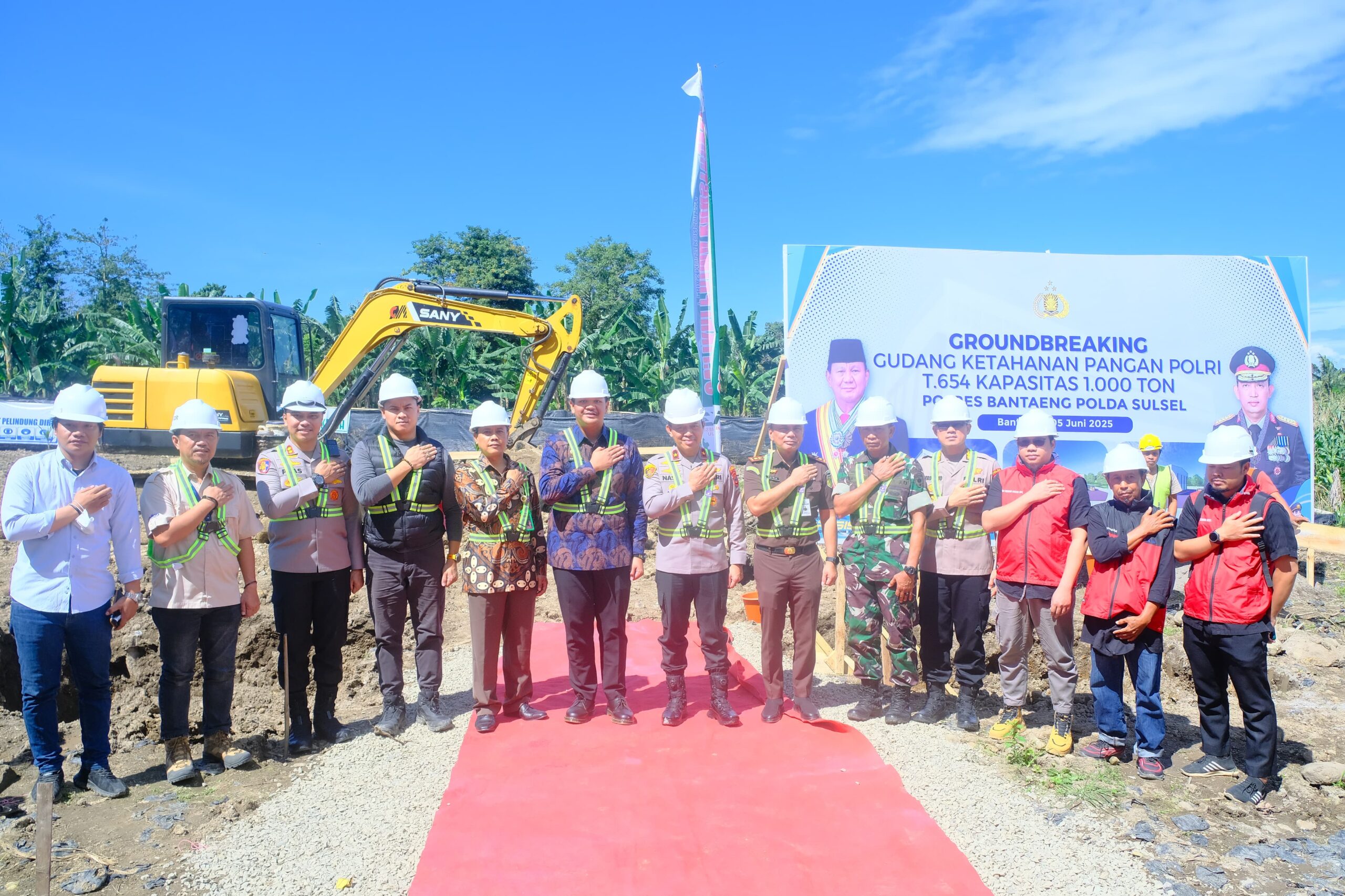 Wakil Kepala Kepolisian Daerah (Wakapolda) Sulawesi Selatan, Brigjen Pol Nasri, S.I.K., M.H., secara resmi melaksanakan peletakan batu pertama pembangunan Gudang Ketahanan Pangan Polri di Kelurahan Gantarangkeke, Kecamatan Gantarangkeke, Kabupaten Bantaeng, Kamis (05/06).